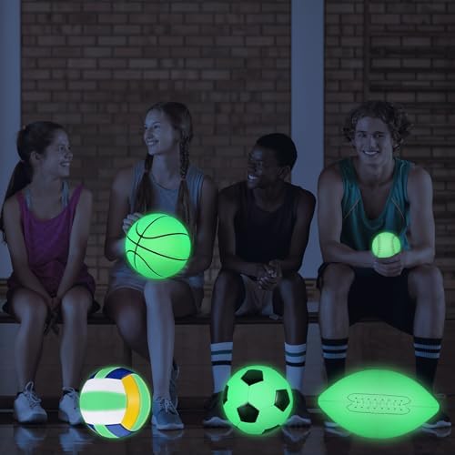 Sratte 5 Pcs Glow in The Dark Sport Ball Set Official Size Football Basketball Soccer Ball Volleyball Baseball with Carry Bag and Pump for Youth Adult Gift