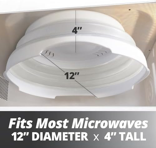 COLLAPSIBLE & MAGNETIC STORAGE - The Hover Cover 2.0 Magnetic Splatter Cover, measuring 12 inches x 12 inches x 4.00 inches, features microwave-safe magnets that securely attach to the microwave ceiling, offering space-saving storage. No more misplacing your microwave lid! Simply pull it down when needed and place it back after use, keeping your microwave clean and organized for easy access. PREVENT SPLATTER & MAINTAIN A CLEAN MICROWAVE - Prevent microwave messes with the 12-inch BPA-Free food lid. This microwave splatter cover acts as a splatter guard for microwave, protecting your microwave oven from spills and splatters during heating. Ideal for reheating food or cooking in the microwave, it keeps your microwave safe and tidy. STEAM VENTS FOR EVEN COOKING - The vented plate guard features built-in steam vents that allow moisture to escape, keeping your food fresh and preventing it from becoming soggy. This microwave food cover provides even cooking and works as a microwave steam cover, locking in the right moisture and heat. SAFE, DURABLE, & BPA-FREE MATERIAL – Crafted from BPA-free materials, this microwave splatter cover withstands temperatures up to 300°F. Fully tested to meet safety standards, it’s patented design ensures a secure, reliable fit for every use. Safe for the entire family, it’s the perfect solution for food protection in your microwave. VERSATILE & DISHWASHER SAFE - This microwave plate cover fits most standard microwaves and accommodates various microwave-safe plates, bowls, and dishes. Dishwasher-safe for easy cleanup, it's the ideal microwave lid cover for food and microwave cover for food splatter. An excellent gift for anyone who uses a microwave. To ensure compatibility and prevent returns, watch our Pre-Order Compatibility Pre-Check Video to confirm your microwave works with the Hover Cover. Check inside your microwave for a flat metal ceiling where the Hover Cover magnets can attach. You can pre-test by placing a magnet on the ceiling.