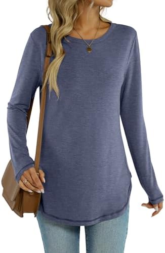 Womens Tunic Tops Long Sleeve Shirts Crew Neck Casual Tshirts Fall Fashion Outfits Clothes