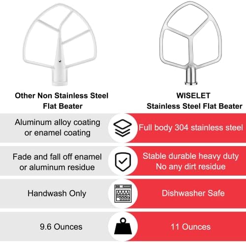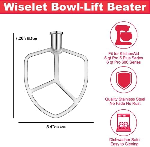 Stainless Steel Flat Beater for KitchenAid 5qt-6qt Bowl-Lift Stand Mixer, Fit for Professional 5 Plus and Professional 600 Seris Mixer K5 KG25 KV25 KP26 KT26, Heavy Duty and Dishwasher Safe