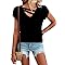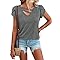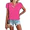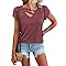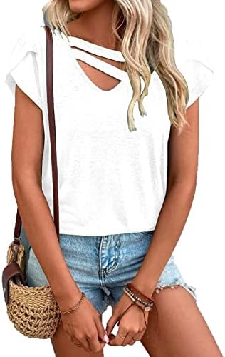 【Features】Petal/tulip sleeve,casual style,flattering V neck let your neck line look more slender and elegant,on the hip length,cute,plain.Make you look more fashion and pretty. 【Match】Dressy casual simple basic tshirts for ladies,great to wear with jeans, shorts, leggings, sweatpants and skirts. Fashion to pair with sunglass, belt or necklace.You can even add belts or ribbons for your DIY fashion match! 【Occasion】Womens cute tee is stylish and classic style.A good choice for a daily,home,work,party,school,shopping,dating,outside,wedding,holiday,vacation,office,etc. 【Essential 】Summer-ready essential that is a classic womens t shirts.Basic casual t shirts keep you cool during hot weather daily wear.Suitable for summer, spring and fall. 【T-Shirts Care】:Fit true to size;Machine washable in gentle with cold water, line dry, do not bleach.