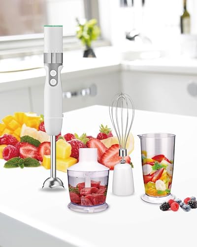 One Battery,Endless Possibilities: All the immersion blender handheld, hand mixer, and smoothie blender are cordless and powered by the same battery. You can easily switch between different appliances, whether at home or outdoors – it handles everything effortlessly. Multi-functional Immersion Blender: Features 6 adjustable speeds and comes with a 700ml chopper, 700ml beaker, and egg whisk. Perfect for smoothies, soups, and baby food. 9-Speed Electric Hand Mixer: Equipped with beater and egg whisk. 9 adjustable speeds. Easily handles bread, cookies, cakes. Easy-Clean Blenders for Kitchen: The detachable blade design makes cleaning a breeze. The stainless steel blade assembly effortlessly crushes fruits, vegetables, and ice for a smooth, silky texture. Dual Battery & Dual Charging Mode: The cordless set includes two high-capacity batteries and a fast-charging base, supporting both battery and base charging modes to eliminate power anxiety. Smart Kitchen Essential: This innovative cordless kitchen appliance set is a must-have for creating a stylish and tech-savvy kitchen.